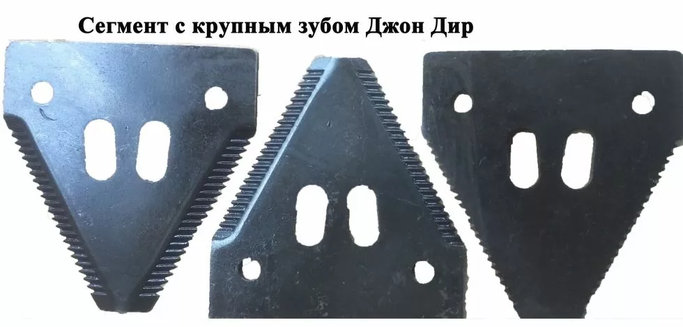 Режущие сегменты изготовлены из высокопрочной легированной стали с закалкой ТВЧ до твердости 54…56 HRC. Применение укрупненного зуба в зоне резания, наряду с уменьшением угла атаки, позволяет получить острозаточенный профиль зуба, что значительно снижает усилие резания, предотвращает забивание ножевого створа, обеспечивает плавность работы.